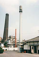 現在、ほとんどのボイラーやエンジンは、ばいじん排出規制値以下の状態で運転されています。にもかかわらず、煙突からススが周辺に落ちて苦情がたえない、というケースが多くみられます。これは、ばいじん濃度が規制値以下であっても、排気ガス中のカーボンブラックが煙道あるいは煙突内に入ると、硫酸ミスト等を核にして大きなススに成長してしまうためで、このメカニズムを理解せずに、単に集塵率とか、ばいじん濃度だけに注目して集塵器を設置したのでは、全く無意味になる恐れがあります。